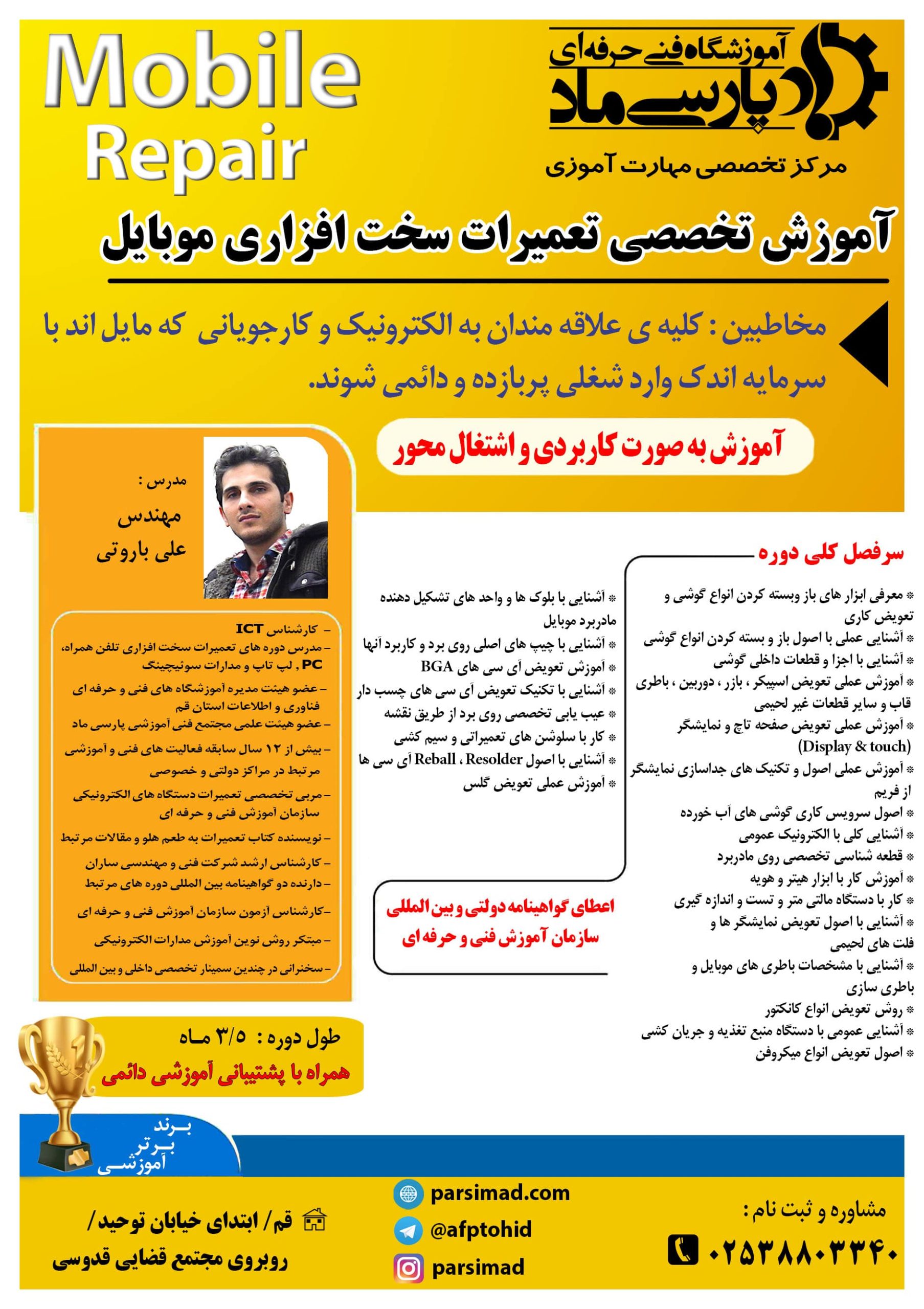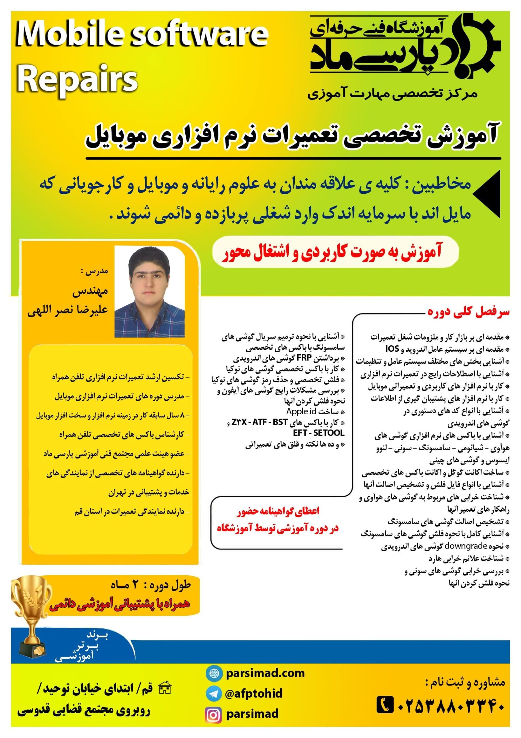 آموزش فلش، ترمیم بوت، رفع مشکلات نرمافزاری، آنلاک، آپدیت و آمادهسازی برای بازار کار.